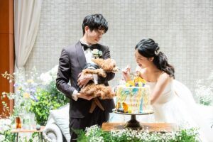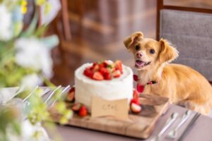 生地から手作りのウエディングケーキは、パティシエと直接打ち合わせをして、マジパンやアイシングクッキーで可愛いペットを表現できます♪ 愛犬用にケーキの持ち込みも可能です!