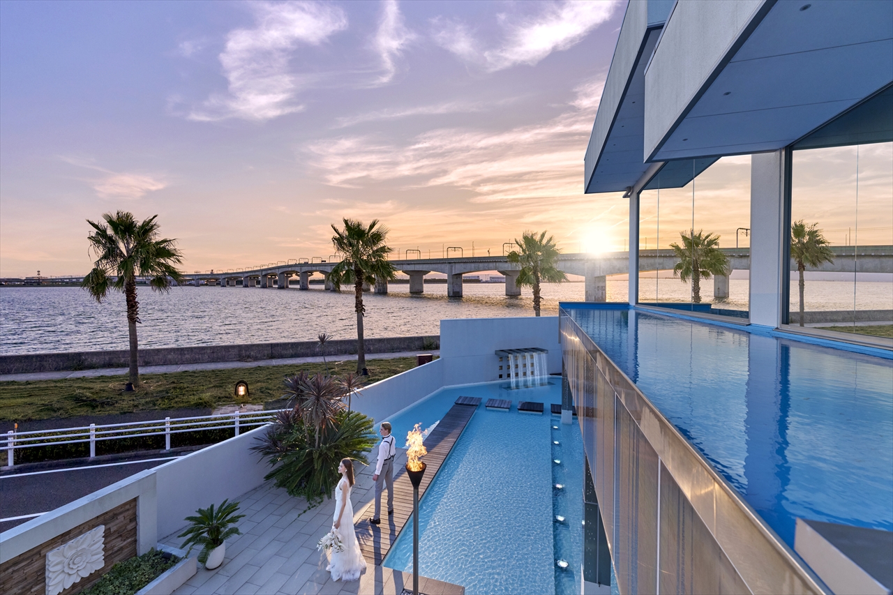 マンダリンポルトはオーシャンビューのリゾート邸宅。フォトスポットも多数あるので、おふたりで記念撮影を愉しんで。