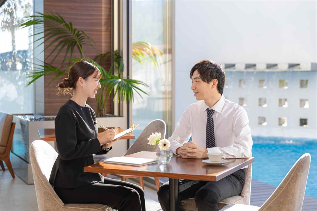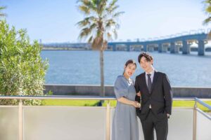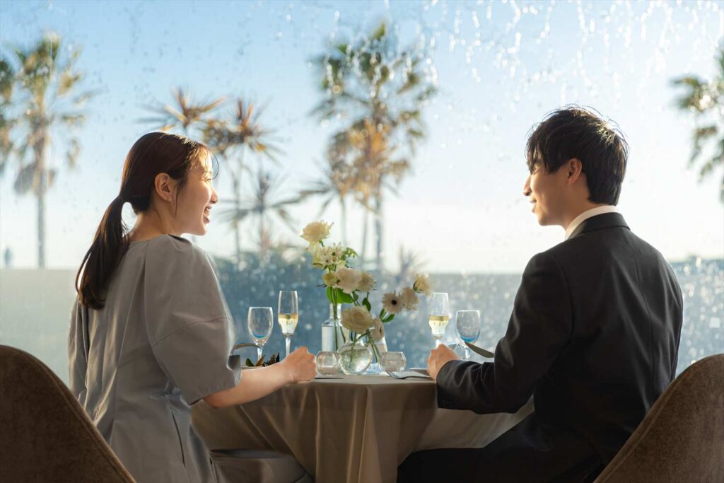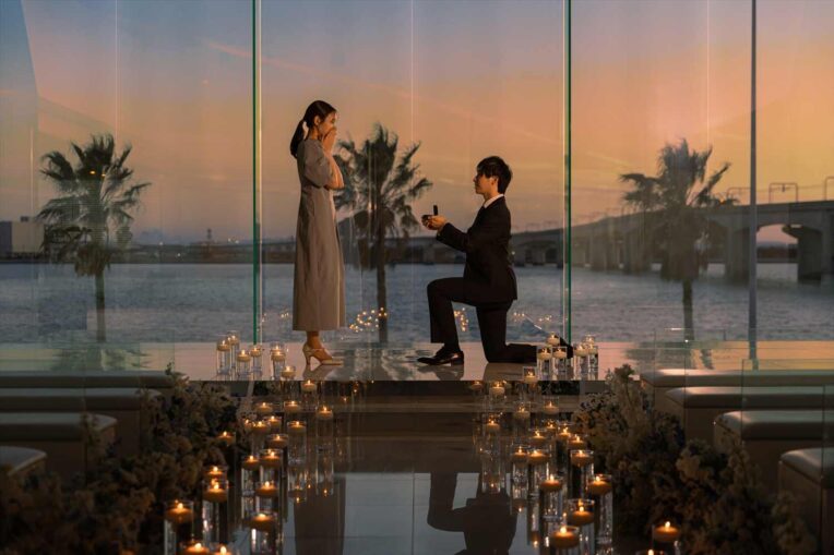爽やかな海辺でのプロポーズも可能。その後はマンダリンポルトでゆっくりデザートやお食事を愉しんで。