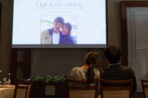 貸切のパーティ会場で、おふたりのデートの思い出やサプライズムービーを上映できます。