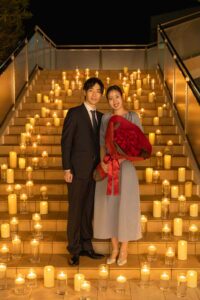 階段にキャンドルを並べて幻想的なプロポーズも叶う。一生の記念になるお写真をのこせます。