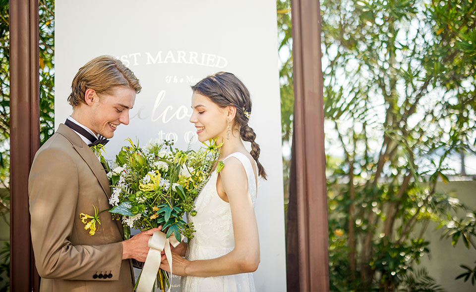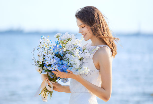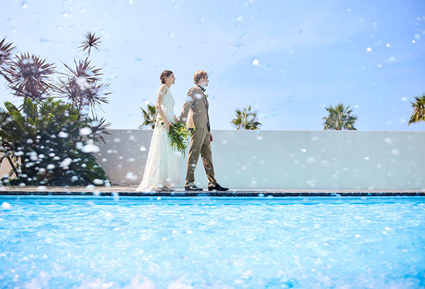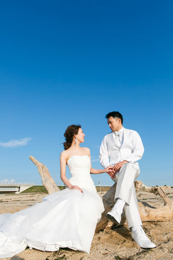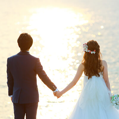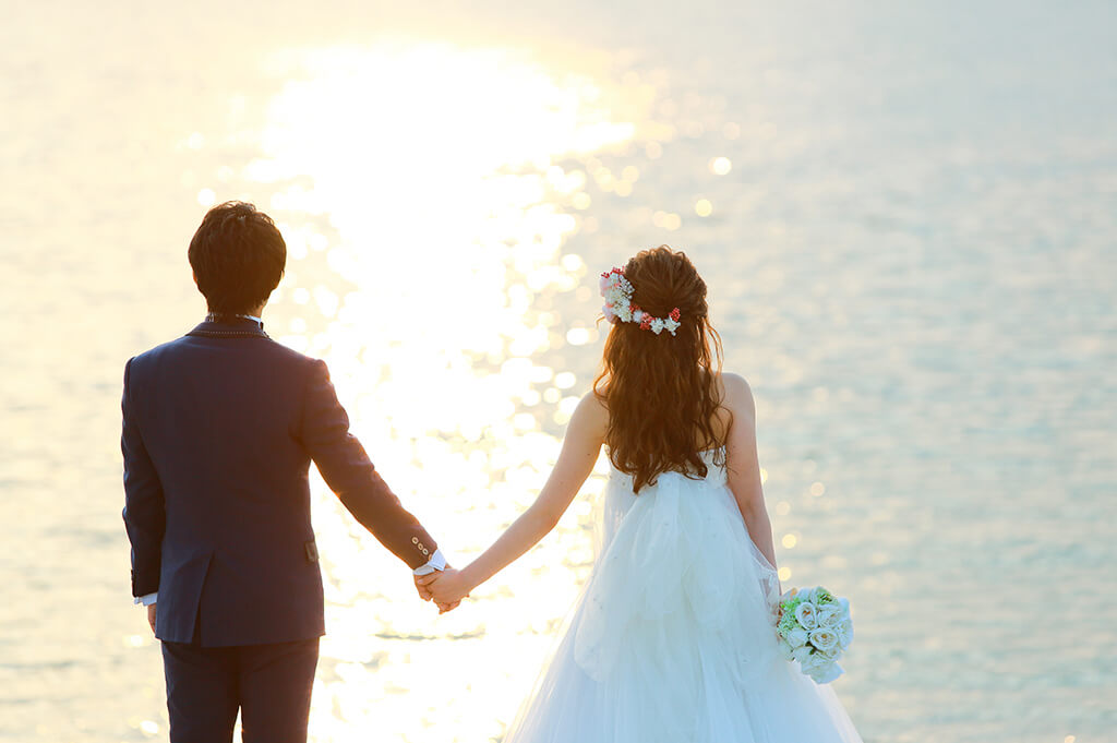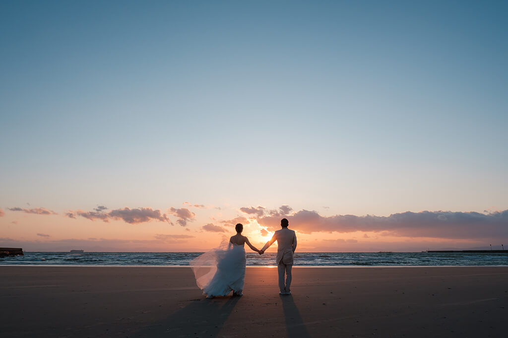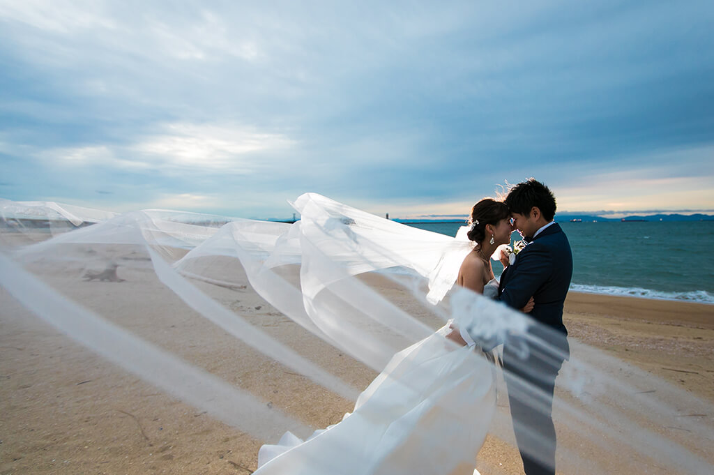 白砂のビーチでのロケーションを活かした前撮りがお楽しみいただけます。