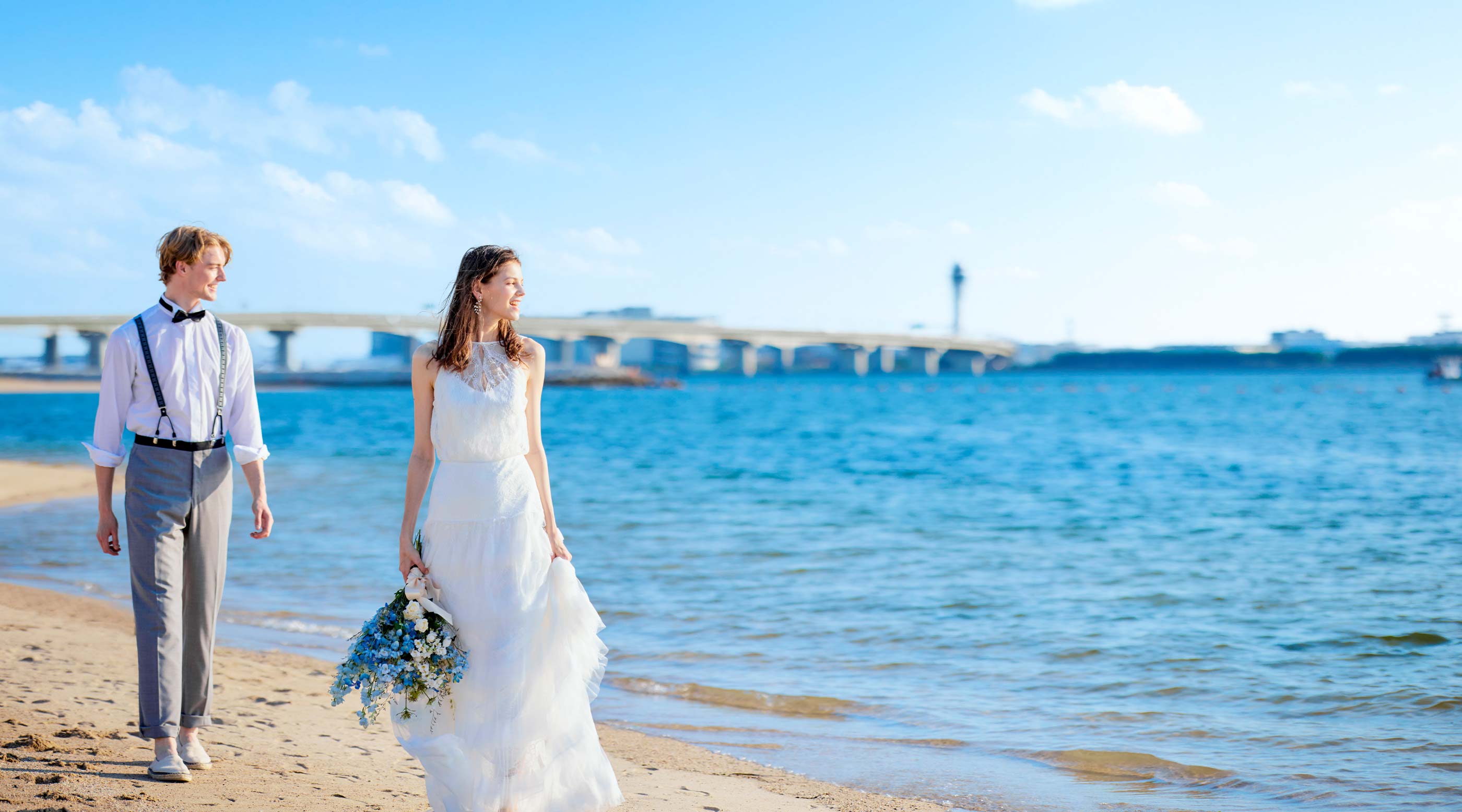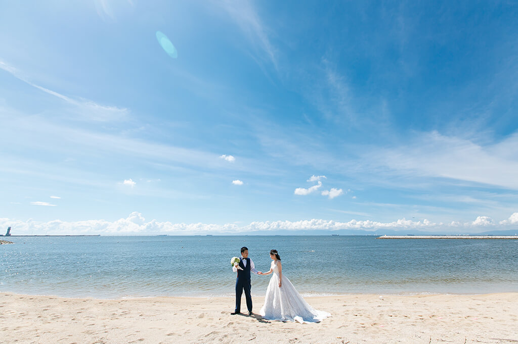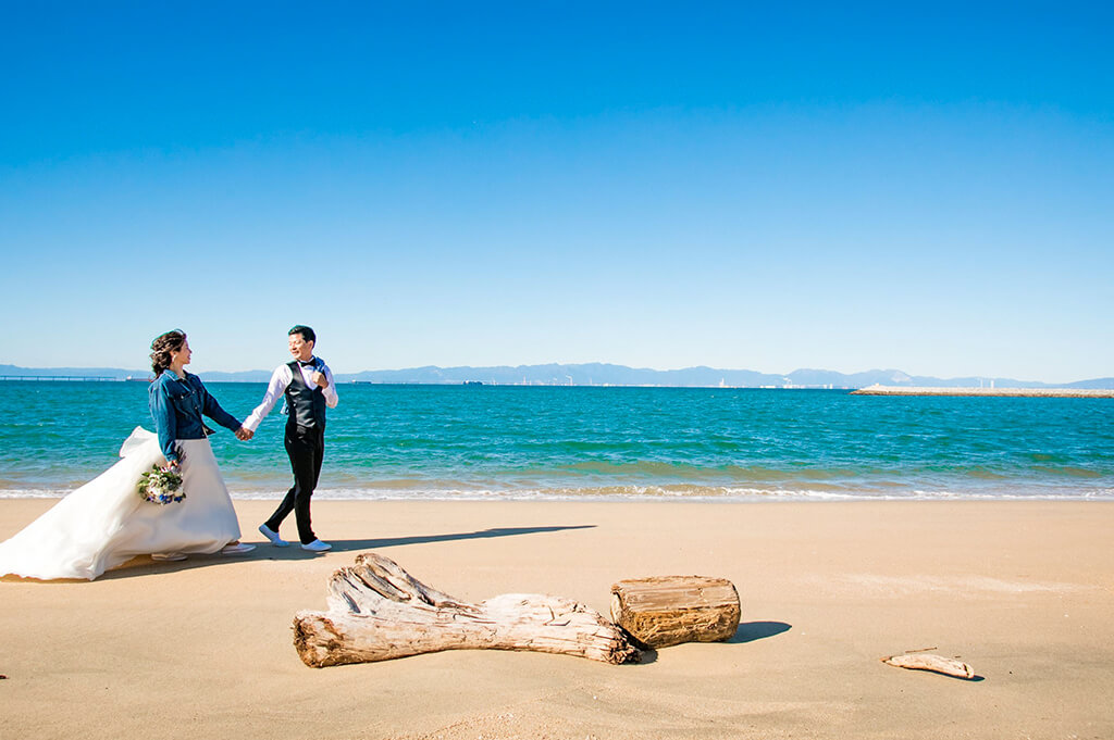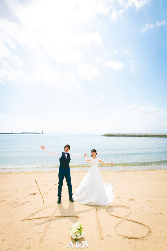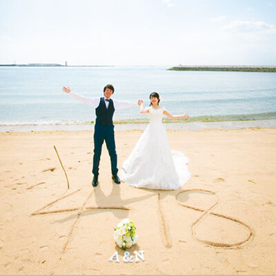 人気No1、会場前のビーチで とっておきのウエディングフォト