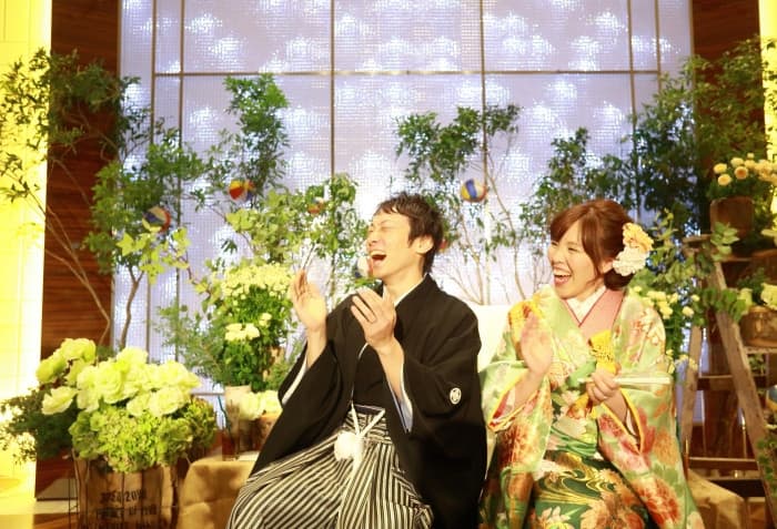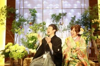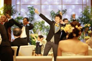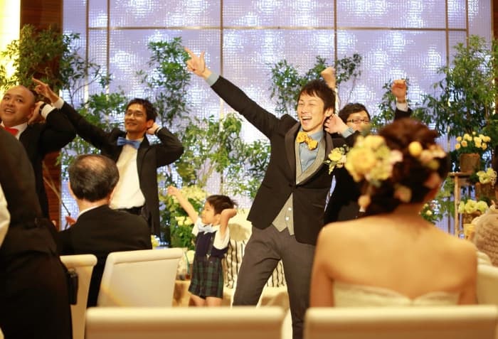新婦親族の余興に新郎も突然参加、新郎友人の余興では会場全員を巻き込んでさながらコンサート会場、