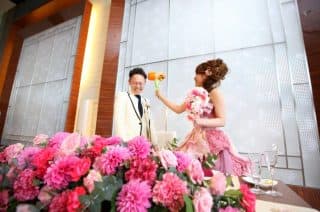 私たちは、3着とも衣装を秘密にしていました。 ウエディングドレスでは、式場でのふたりの対面。 カラードレスでは、新郎も一緒にドレス当てゲームをして盛り上がりました。 そして和装はブライズルームでの対面。 ゲストを交えたゲームもたくさんでき、笑顔いっぱいの結婚式ができました。
