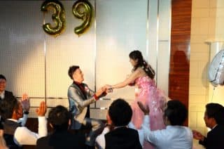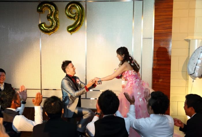 3月9日(thank youの日)に入籍されたおふたりの結婚式のテーマはもちろん「39」 待合室には39の大きなゴールドのバルーンとハート型に飾られたたくさんの写真が皆様をお出迎えしました。 「来てくれる方みんなが写っているように写真を選んだんだ」とおっしゃっていたおふたり。常にご家族やご友人のことを想いながら、準備を進めていらっしゃいました。当日来てくださったゲストの皆様には、おふたりの温かい気持ちがしっかりと伝わっていたと思います。