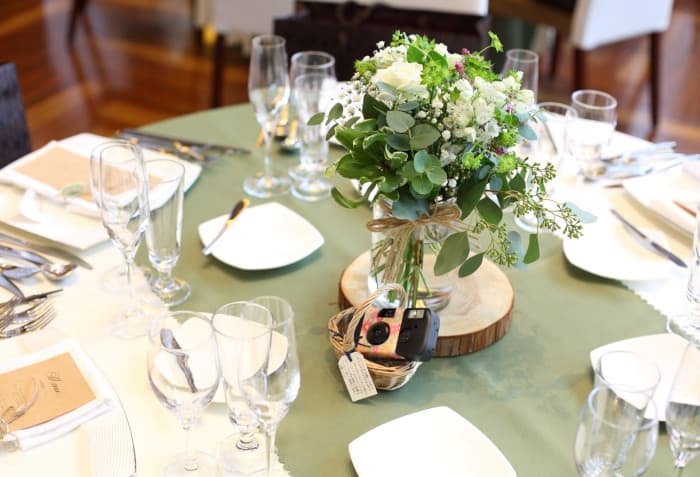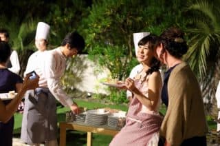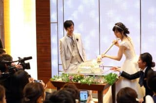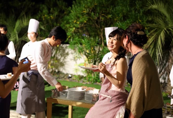 派手な演出や、イベントなどは入れずとにかくゲストの方とのお時間を楽しみましたね‼ デザートビュッフェではおふたりからゲストの方へ直接ウェディングケーキを届けました。 エプロン姿がよくお似合いで、嬉しそうにお話をしながらケーキを配るおふたりを見ていて、私もとても幸せでした。