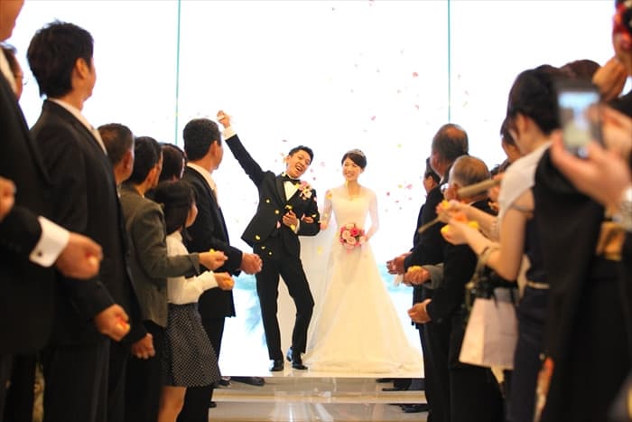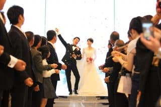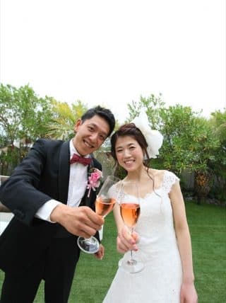 私たちのテーマに背いて天気は雨で、チャペルでのフラワーシャワーになりましたが、みんなが近くに寄ってくれたので本当嬉しい時間になりました。 そしていつできるかな…と思っていたのバルーンリリースも、ちょうど雨があがり乾杯の音頭と共に空へ飛ばすことができました!臨機応変に進行を入れ替えて対応してくれるスタッフさんがとても素敵でした。