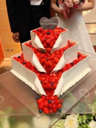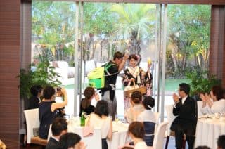 みんながやったことのないことをしたい!という気持ちから、サプライズを企画。新郎の立会人代表をクジ引きにしたところを実際は全部同じ友人の名前にしたり、ウエディングケーキを運ぶパティシエさんがまさかの転倒…でもそれはダミーケーキだったり 笑。