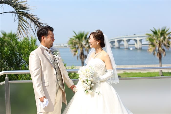 私達は地元が九州で、遠方のゲストの方々も来てもらえるように空港の近くの式場を探していました。 いろいろ回る中、マンダリンポルトの式場は海が見えてリゾート婚のような雰囲気で、なによりスタッフの方々がとても素敵でマンダリンポルトで式を挙げたいと思い決めました。