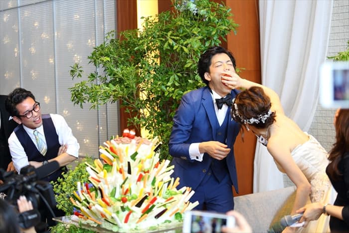とにかく変わったことがしたい!と、おふたりとのお打合せでは本当に楽しいことばかりお話しさせていただきましたね!私も見たことがないからこそ、おふたりと一緒に考える結婚式は、本当に楽しみな時間でした。野菜ケーキやバーベキュー・おふたりのダンス余興など、おふたりだからこその演出だったと思います。