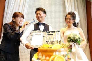 「自分たちらしい結婚式を創りたい」という思いに対し、担当プランナーさんがたくさんアイディアをくださり、大変素敵な結婚式を挙げることができました。 2人で手作りをした「結婚証明書」には列席者の方全員の拇印とサインをいただくことができました。 また、入場の際には垂れ幕を出したり、ウエディングケーキ入刀の際にはキャンプ用のナイフを使ったり、フランベ演出をしたり…2人の個性の詰まった式を挙げることが出来ました。 スタッフの方も皆様温かく笑顔で迎えてくださり、楽しく一日を過ごすことができました。私達の想いをすべて叶えてくれた式場です! また、会いたいなと思うスタッフの方たちばかりです。本当にアットホームで和やかな式になりました。本当にありがとうございました。