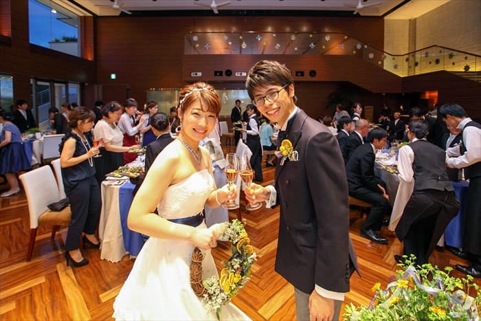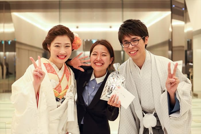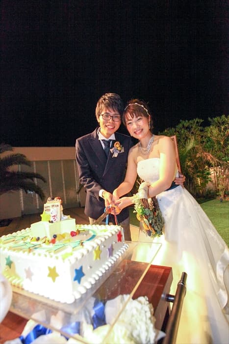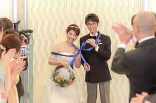 そのおかげで、家族や大切なゲストへ式の演出や料理、衣装全てに私達の結婚式に対する強い気持ちを込めることができました。式当日は、会場全体に幸せと感動の涙と笑顔がいっぱいに溢れました。 また、式直後にこの日を迎えるために頑張ってきた気持ちが溢れ、竹本プランナーと3人で抱き合って泣いたシーンが私達は一番感動しました。それは、どこにもない満天の星空のようで、私達のテーマそのものでした。 本当に素敵な思い出をありがとうございました。