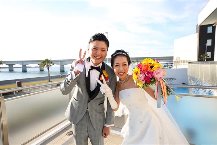 熊本ご出身の亮太さん、名古屋ご出身の愛弓さんが沖縄で出会い、マンダリンポルトで結婚式を挙げてくださったこと、そして私を担当プランナーにしてくださったこと大変嬉しく思います。 おふたりの出身地を出しつつゲストの皆さまに楽しんでいただくおもてなしをおふたりと考え、実現することができた最幸の1日でした。愛弓さんの手作りアルバムやムービーもとても素敵で、ゲストの皆様にとっても笑顔と涙溢れる素敵な時間になったと思います。 結婚式後も家族のように接してくださり、改めておふたりとの出会いと、素敵な結婚式を一緒に創り上げることができた喜びを実感しています。 おふたりが結婚式当日を思い出すことができる、何度でも帰ってこられる場所がマンダリンポルトです。いつでも帰って来てくださいね!お待ちしています!
