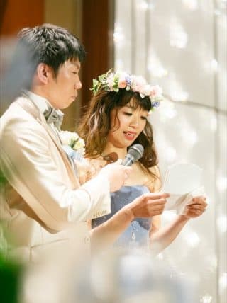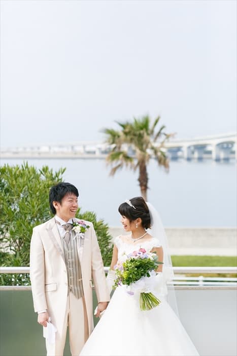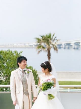 式場選びに悩んでいた時、マンダリンポルトの式場に行き「海が見えるチャペル」「ナチュラルなガーデン」、そして「スタッフの温かい雰囲気」が気に入り決めました。 「とにかく来てもらった人に楽しんでもらいたい!」「感謝の気持ちを伝えたい」という想いで、手作りアイテムを頑張って作りました。ウェルカムスペースも自分の好きなように飾り付けができ、素敵な空間になりました。そして、来てもらった人が楽しめるようにしたいという思いで、私達が企画したイベントもたくさんさせていただきました。やりたいことをたくさん担当プランナーさんに伝えましたが、どの企画も「いいですね!」と言ってくださり、そのおかげで私たちもゲストの皆様も笑顔あふれる楽しい式になりました。結婚式当日は緊張していた私達ですが、担当プランナーさんをはじめ、スタッフの方々のおかげでとても楽しく、笑いあり、涙ありのとっても最高の一日になりました。本当にありがとうございました。