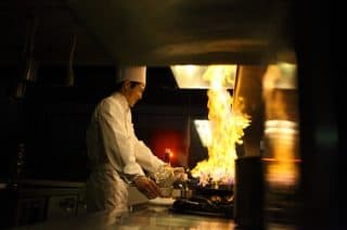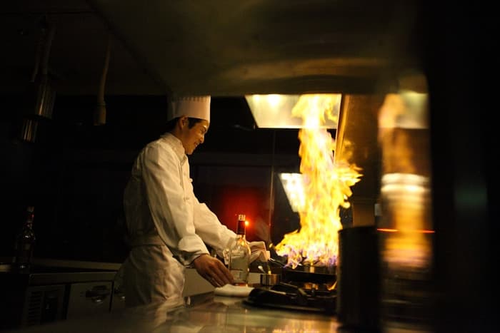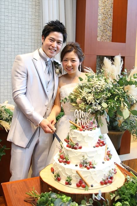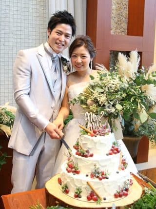おふたりのウエディングケーキは野球ボールをキャッチした方が代表して運んで入場してくださいました!まさかの人物が運んでくださったので、ケーキの登場を待っていたほかのゲストの方も驚いていらっしゃいましたね。ふみやさんがシェフに扮しておこなったフランベのお時間には親御さまへ感謝の気持ちを込め、お肉料理を届けました。とても喜んでいただくことができ、よいお時間となりましたね。