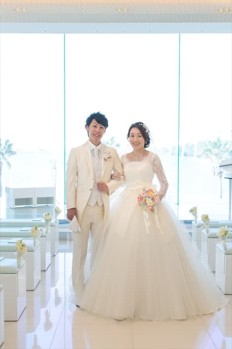 海が見える絶好のロケーションと、見学の際のスタッフのアットホームで温かい対応に一目惚れし、マンダリンポルトに決めました。式場のスタッフ全員の名刺をいただき、安心感とチームワークの良さを感じました。 結婚式の打合せを重ねるごとに本当に仲良くなった担当プランナーさん。「感謝と笑顔」をテーマに担当プランナーさんと三人四脚で進めていきました。私たちも気付けば、打合せに行くのが楽しみになっていました。