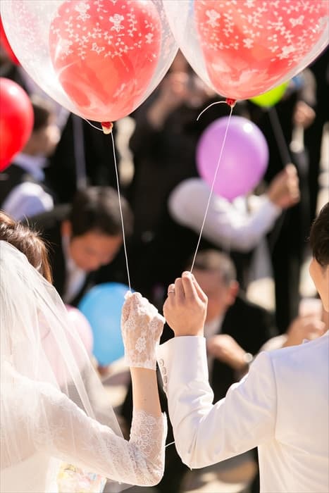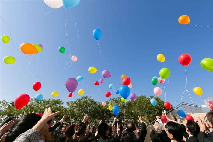 おふたりと過ごした一日はとても楽しく、本当に幸せでした。 “ゲストの方へ感謝を伝えたい”そんなゲスト想いのおふたりはバルーンリリース、シルバーファウンテン、お茶漬け・デザートビュッフェなど、たくさんの楽しいイベントが満載! 最高のお天気に恵まれた中、晴天の大空へ飛び立つバルーンリリース、とてもとても綺麗でした。 リメイク入場では、各卓のシルバーファウンテンをおふたりから皆様への感謝の気持ちとともに灯しました。 披露宴会場いっぱいに上がった花火、とても綺麗でしたね!おふたりからのおもてなし、お茶漬け&デザートビュッフェも大切なゲストの皆様にお喜びいただけました。