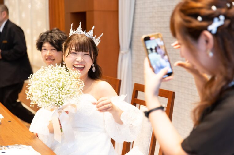 とっても明るくいつも沢山お話をしてくださる、素敵なおふたりです!おふたりは高校生の頃にお付き合いをされ約10年の月日を経てこの日を迎えます。