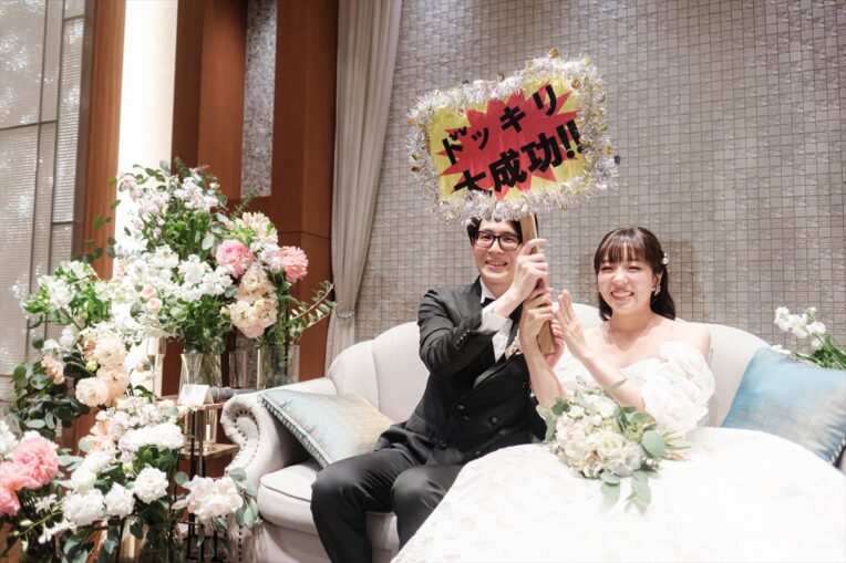おふたりの好きなキャラクターをテーマとして一日を創りました。BGMはもちろん、待合室の装飾やエンドロールの曲までもおふたりの思い出の映画の主題歌にするなどでこだわりました。披露宴中のイベントも好きなキャラクターの図鑑番号を使って行い、ゲストの皆さまに、よりテーマ性を感じて頂けたかと思います。一日を通してとても温かく、和やかな結婚式で素敵なお時間でした!