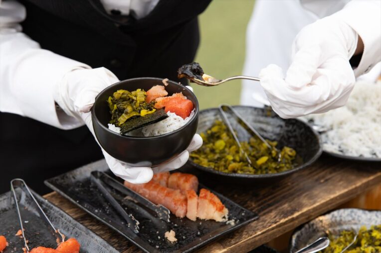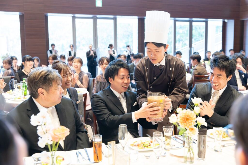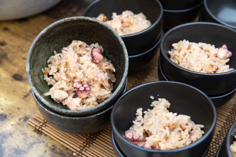 ●地元名産の”タコ”モチーフを添えたウエディングケーキ