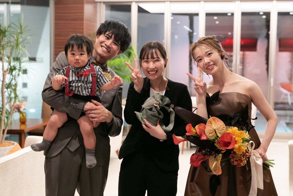 おふたりの「たいせつな想い」を一緒にカタチにすることができ、とても嬉しく思っています。おふたりの持つお互いを思いやる心・周りを気遣う優しさを、一緒にお打ち合わせを通して過ごす中でとても素敵だなといつも思っておりました。りとくんの成長もスタッフ全員で感じながら当日を迎えることができ、おふたりとの準備期間も含めてとても楽しかったです!