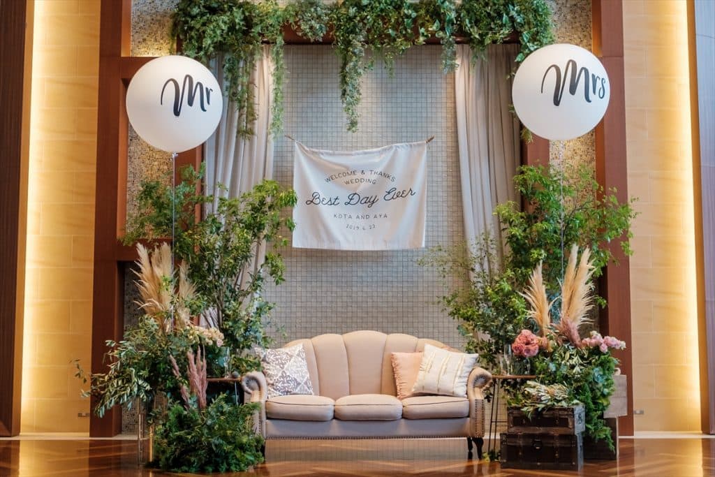 2つ目は高砂にMr&Mrsの巨大バルーンを置きました。インパクトがあり、写真映えもしてゲストから好評で嬉しかったです!